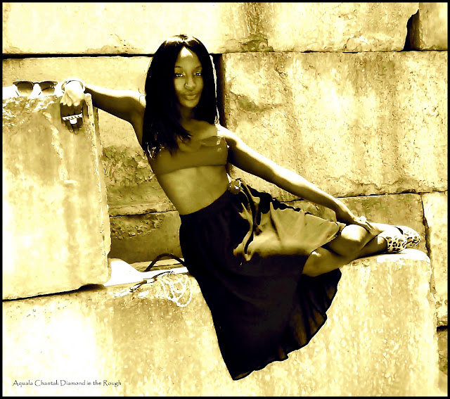 Hey guys! I have recently been killing the sounds of this up and coming Charlotte Artist, Aquala Chantal "The Artist"!! She is originally from Charleston, SC so you all know I have to show some love for a fellow native! Her music is just as beautiful as she is, on the inside and out. Aquala recently sent me a copy of a few pics that were taking during a "Diamond in the Ruff" photoshoot and I had to share with you guys. The stylist Rae J. and J. Reese of Chaotic Marketing did an amazing job of capturing a beautiful, sexy, sultry look for this new artist with the combination of the red cropped tube and the black high-low skirt along with leopard heels.